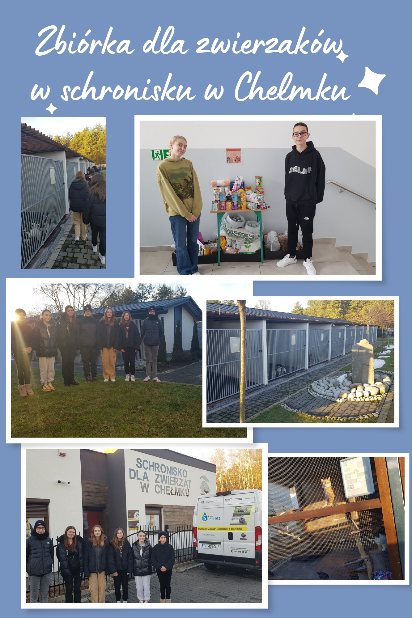 w trakcie której uczniowie zbierali żywność, koce, obroże, smycze i inne potrzebne artykuły dla bezdomnych psów i kotów przebywających w schronisku w Chełmku. 18 grudnia przedstawicie klasy 6 i 7 wybrali się do schroniska osobiście, aby przekazać zebrane dary. Na miejscu pracownicy opowiedzieli nam jak wygląda ich praca i jak wygląda codzienne życie 120 psów i 70 kotów, które tam przebywają. Pogadanka była bardzo pouczająca, a uczniowie z zaciekawieniem słuchali wszystkich informacji.