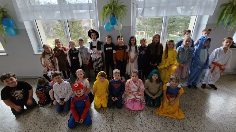Uczniowie klas 1-7, którzy uczestniczyli w zabawie tanecznej byli poprzebierani w barwne stroje karnawałowe. Nie brakowało zatem księżniczek, piratów czy superbohaterów znanych z hollywoodzkich filmów. Trzygodzinnej zabawie towarzyszyła oprawa muzyczna przygotowana przez uczniów klasy 7 oraz stoisko z popcornem i napojami.