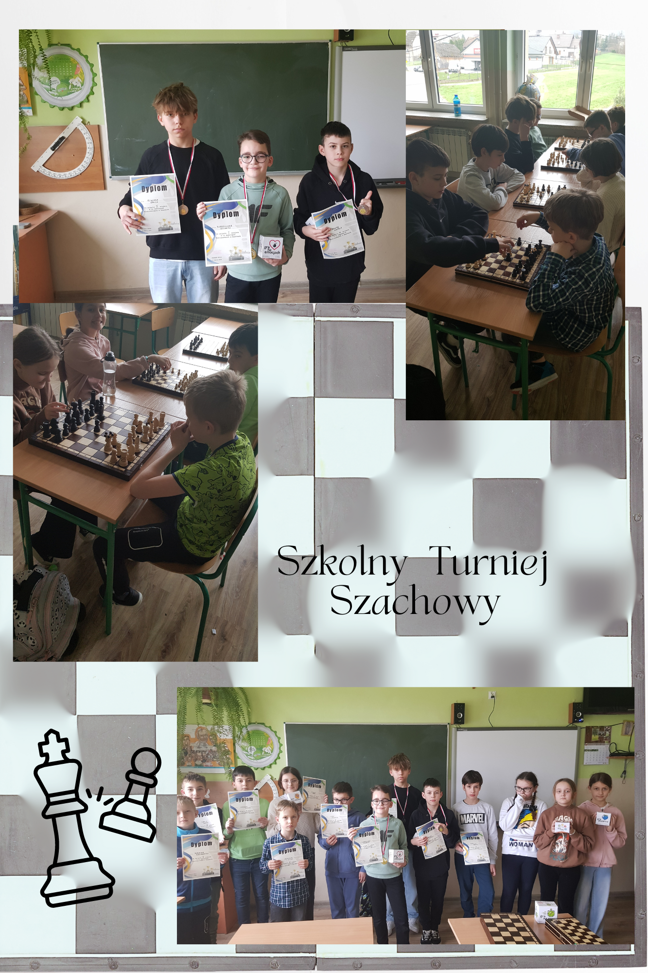 W piątek 14.03 w naszej szkole odbył się turniej szachowy, w którym wzięło udział 13 uczniów i uczennic. Zawody rozgrywane były systemem szwajcarskim i trwały 7 rund. Do rozgrywek przystąpiło 9 chłopców i 4 dziewczyny z klas 3-7. Zwycięzcą został Korneliusz Kuzianik z klasy III, srebro wywalczył Oliwier Karcz z klasy VII, a na najniższym stopniu podium stanął Adam Wróbel z klasy V. Oprócz medali najlepsi chłopcy i najlepsze dziewczyny otrzymali nagrody w postaci gier planszowych ufundowane przez Radę Rodziców.