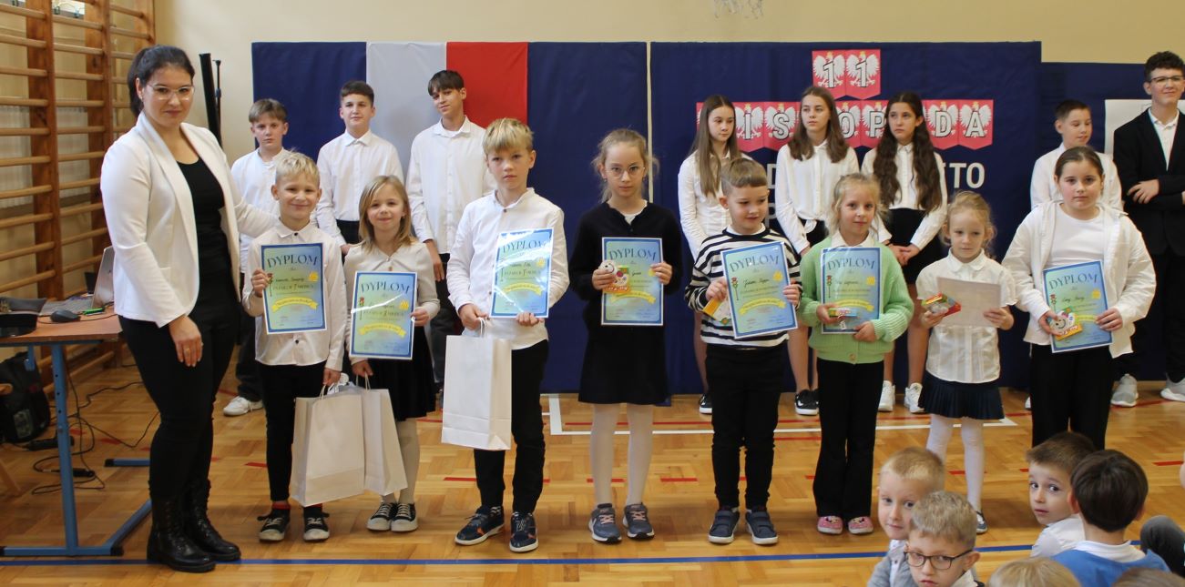 a oddział świetlicy szkolnej wykonał tematyczną gazetkę ścienną. Quiz wiedzy o bezpieczeństwie w ruchu drogowym pozwolił najmłodszym uczniom na zapoznanie się i przypomnienie o wielu ważnych kwestiach związanych z dbaniem o własne zdrowie i bezpieczeństwo podczas poruszania się po drodze. Klasa 7 ułożyła słowa do piosenki o odblaskach pt. “Odblaskowy trakt”, cała piosenka została wykonana przez uczniów klasy 1. Podczas “Odblaskowego dnia” wszyscy uczniowie przyszli do szkoły ubrani “odblaskowo” - w jaskrawe kolory i elementy odblaskowe.