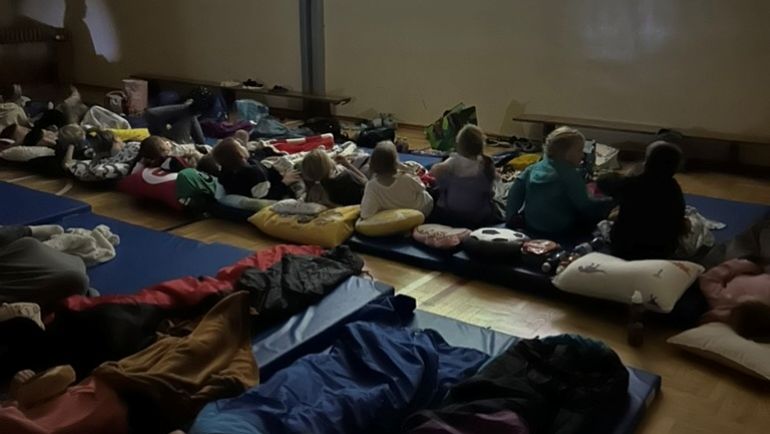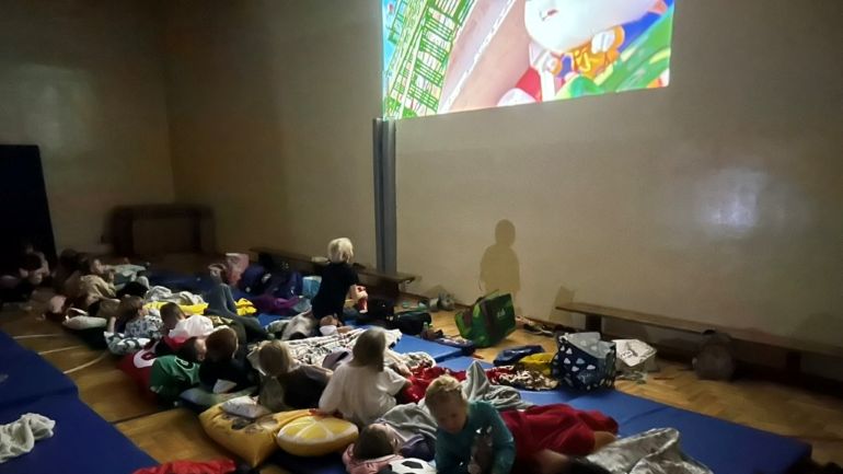 Uczniowie przynieśli swoje piżamki, kapcie, poduszki, kocyki i śpiwory, a także ulubione przekąski. Na rozłożonych materacach wygodnie oglądali filmy animowane, śmiejąc się i miło spędzając czas w gronie kolegów i koleżanek. Nie zabrakło również pysznej pizzy, która dodatkowo umiliła wspólny wieczór. Było radośnie, ciepło i przytulnie – dokładnie tak, jak powinno być podczas szkolnego