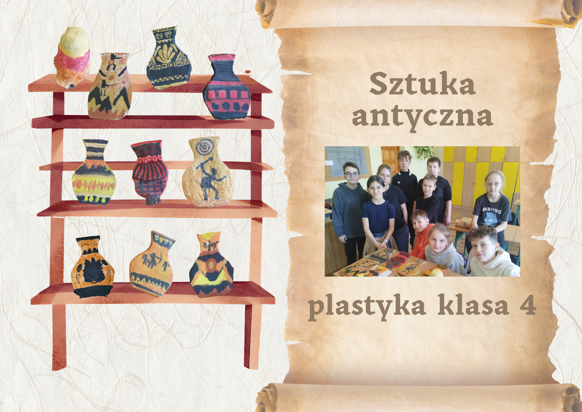 W czasie lekcji plastyki w klasie czwartej realizowano temat: Różne techniki malarskie a sztuka antyczna.
